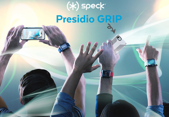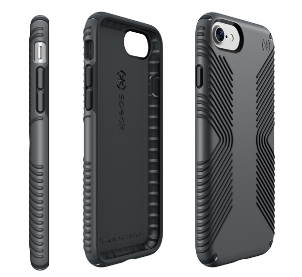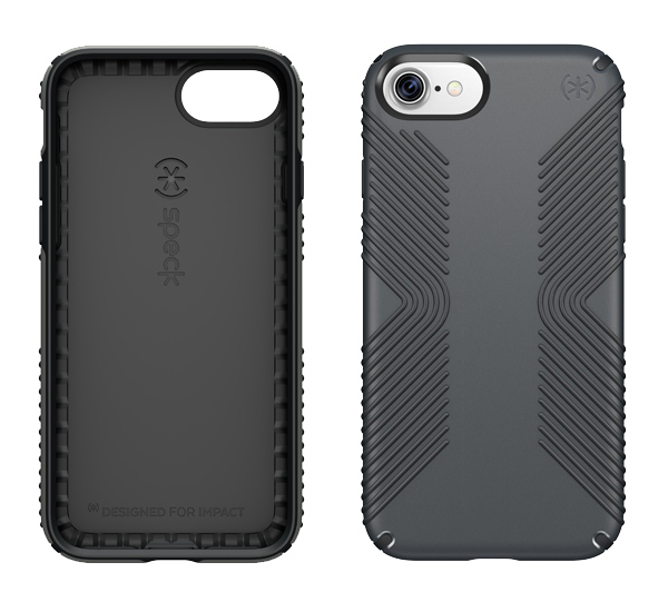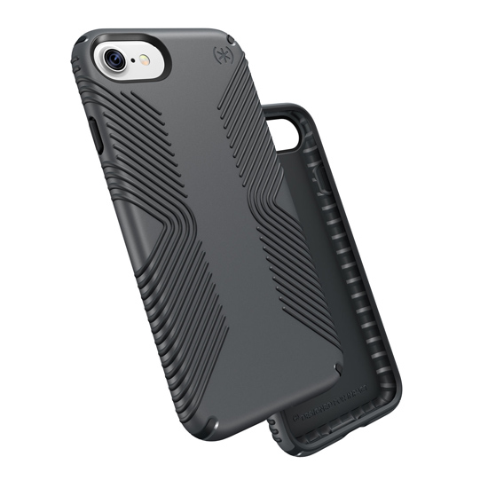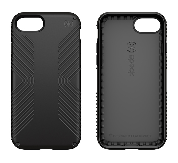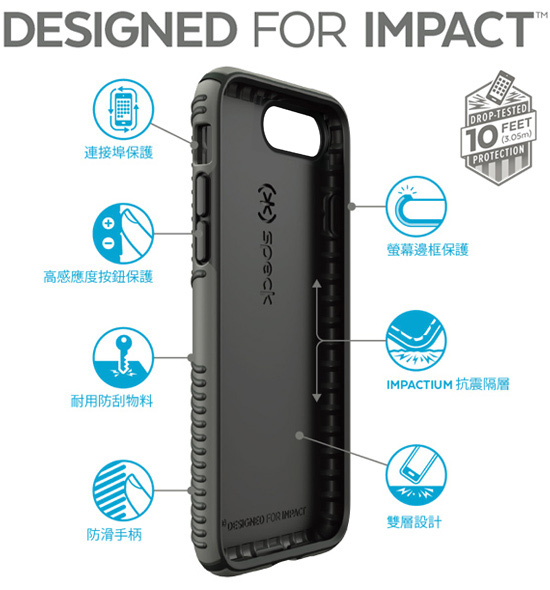 Speck Presidio Grip iPhone 7 纖薄防手滑防摔保護殼,以創新的制震技術 IMPACTIUM™ Shock Barrier動態吸震材質,為您的裝置提供完全防護,採用的摔落測試標準,已超越前一代 Speck CandyShell 保護殼所使用的軍規標準。保護殼背面突起的時尚橡膠斜紋條飾設計,不只防手滑,更提供絕佳握感。