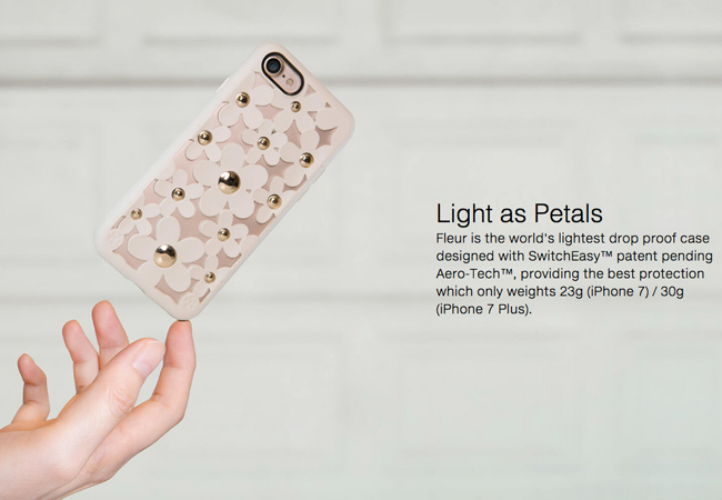 SwitchEasy Fleur iPhone 7 3D花朵吸震防摔保護殼,3D花朵造型減震結構,並採用AERO-TECH航太輕量化製程,讓Fleur與眾不同。TPU/PET雙材質,提供 iPhone 360度全方位的保護。