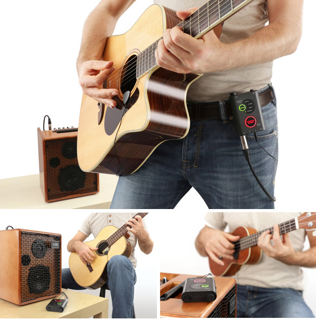 目前為止,在舞臺上演奏時讓你的原聲吉他聽起來像在工作室裡一樣,是一項很艱巨的任務,甚至是不可能的。在舞臺上彈奏原聲吉他通常分為兩種情況:使用內建式 PIEZO 壓力式拾音器或磁性拾音器系統呈現原聲吉他自然溫暖音色的極小表現,或一動不動的坐在舞臺上,麥克風對準吉他的“甜蜜點-最佳拾音位置”,但這又大大的限制了你移動的可能性。